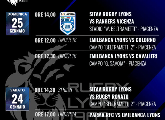 Piacenza, Stadio “Walter Beltrametti” – domenica 18 gennaio 2026Serie B – VIII giornataSitav Rugby Lyons v HBS Colorno 17-25 (12-15) Marcatori: 5’ cp Pasini (0-3), 12’ cp Pasini (0-6), 17’ cp Pasini (0-9), 24’ m Franzoso (5-9), 31’ cp Pasini (5-12), 37’ m Opizzi D tr Groppelli (12-12), 40’ cp […]