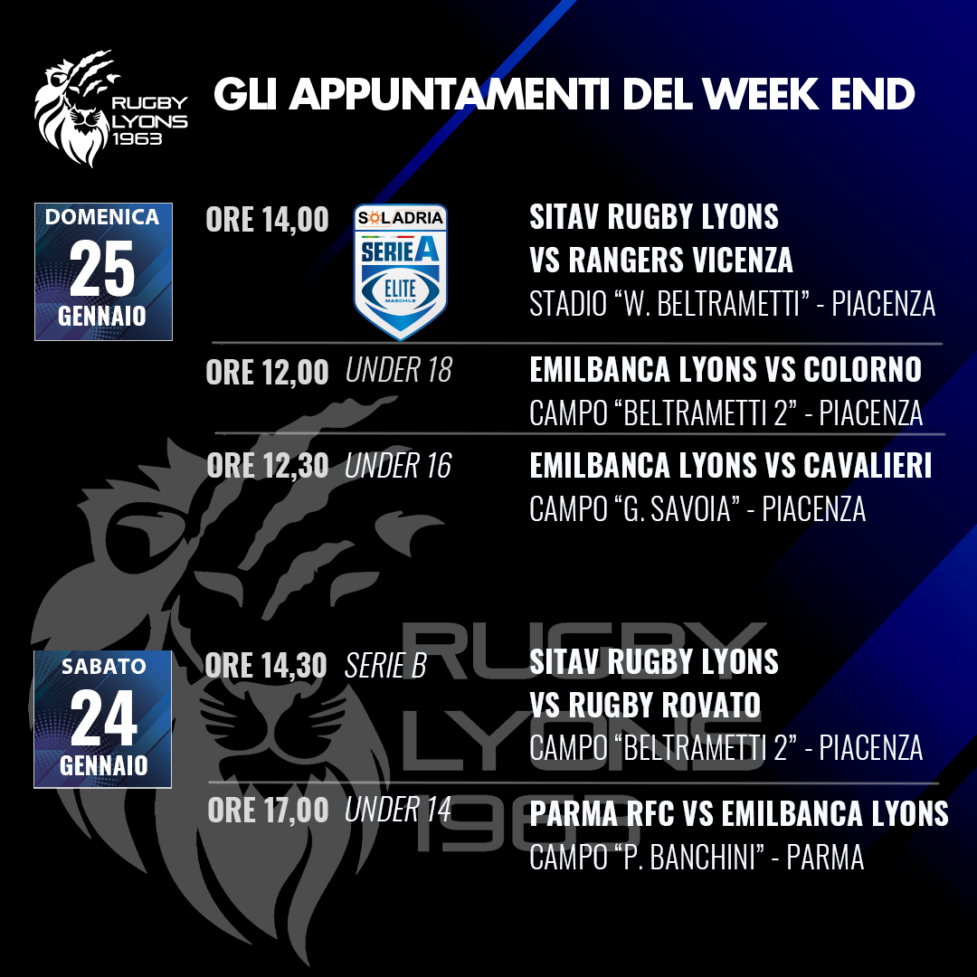 Primo weekend a ranghi completi per il 2026 in casa Lyons, che vedrà tutte le squadre in campo nel fine settimana del 17-18 gennaio. Tante sfide importanti e sentite per i Leoni, andiamole a scoprire. I cuori bianconeri saranno rivolti a Colorno, dove la Sitav Rugby Lyons di Paoletti cerca […]