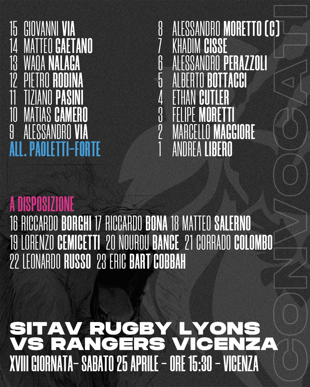 La ASD Rugby Lyons si unisce con profondo dolore al lutto per la scomparsa di Guido Ghiglia, titolare e anima dell’azienda Sitav, storico main sponsor della nostra società. Grazie al suo impegno e alla sua vicinanza, la ASD Rugby Lyons ha potuto intraprendere un cammino ambizioso, scalando progressivamente i vertici […]