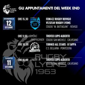 L’imminente fine settimana sarà focalizzato sulla prima squadra Lyons, che disputerà la prima giornata di campionato, mentre il settore giovanile osserva un turno ai box in attesa di ripartire. Andiamo a scoprire gli appuntamenti del weekend bianconero. Sfida da brividi per i Leoni di Matenga e Solari, che faranno ...